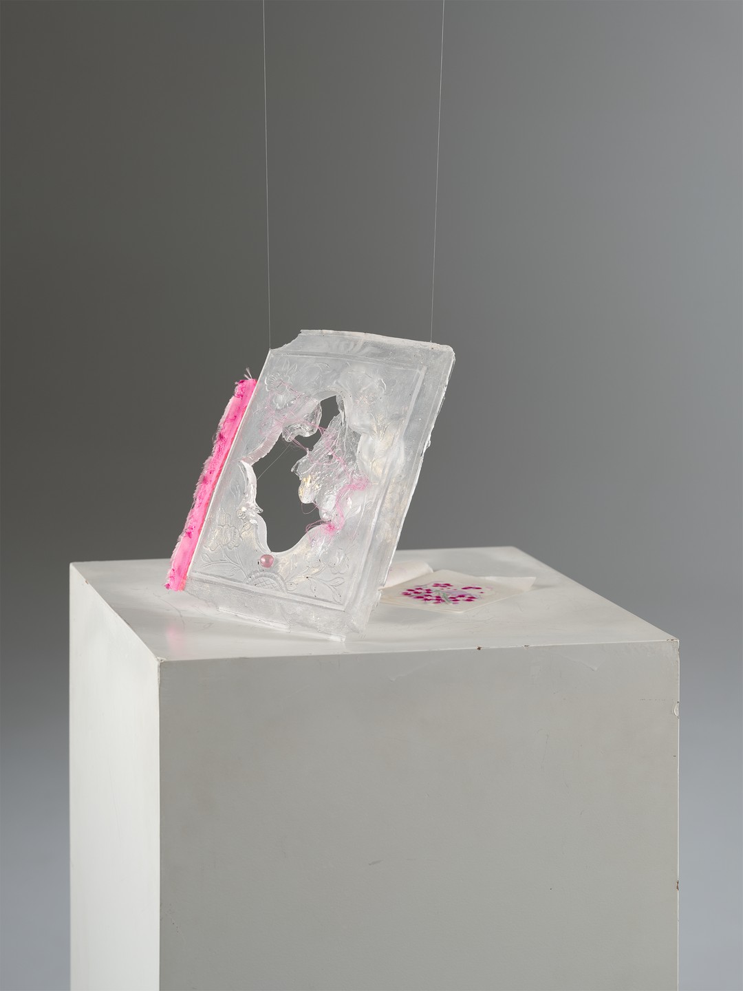 于田田 初绽的少女心, 2024 真丝欧根缎、针织长毛弹力带、马海毛手编线、固体油画颜料、羊毛毡、透明UV自由树脂、热熔胶棒、蚕丝线、玻璃线、股线 20 x 24 cm