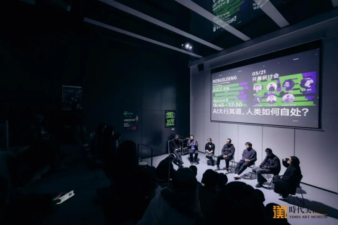 展览开幕同期举办了以“科技艺术与人工生命”和“AI大行其道,人类如何自处?”为主题的研讨会。策展人白小墨担任主持,艺术家郭锐文、郭耀先、李波、杜伟龙、何嘉维、白建松、侯帅、罗霄、韩杨为研讨嘉宾;四川大学文学与新闻学院教授、博导马睿,四川大学哲学系副教授曾怡,以及四川美术学院实验艺术学院研究生部负责人、副教授杨光影为学术批评。专业学者与艺术家们共同探讨AI时代下技术、艺术与人文的全新可能性,以及人类在技术浪潮中的自我定位与未来方向,为观众提供了多维度的思想碰撞与启发。
