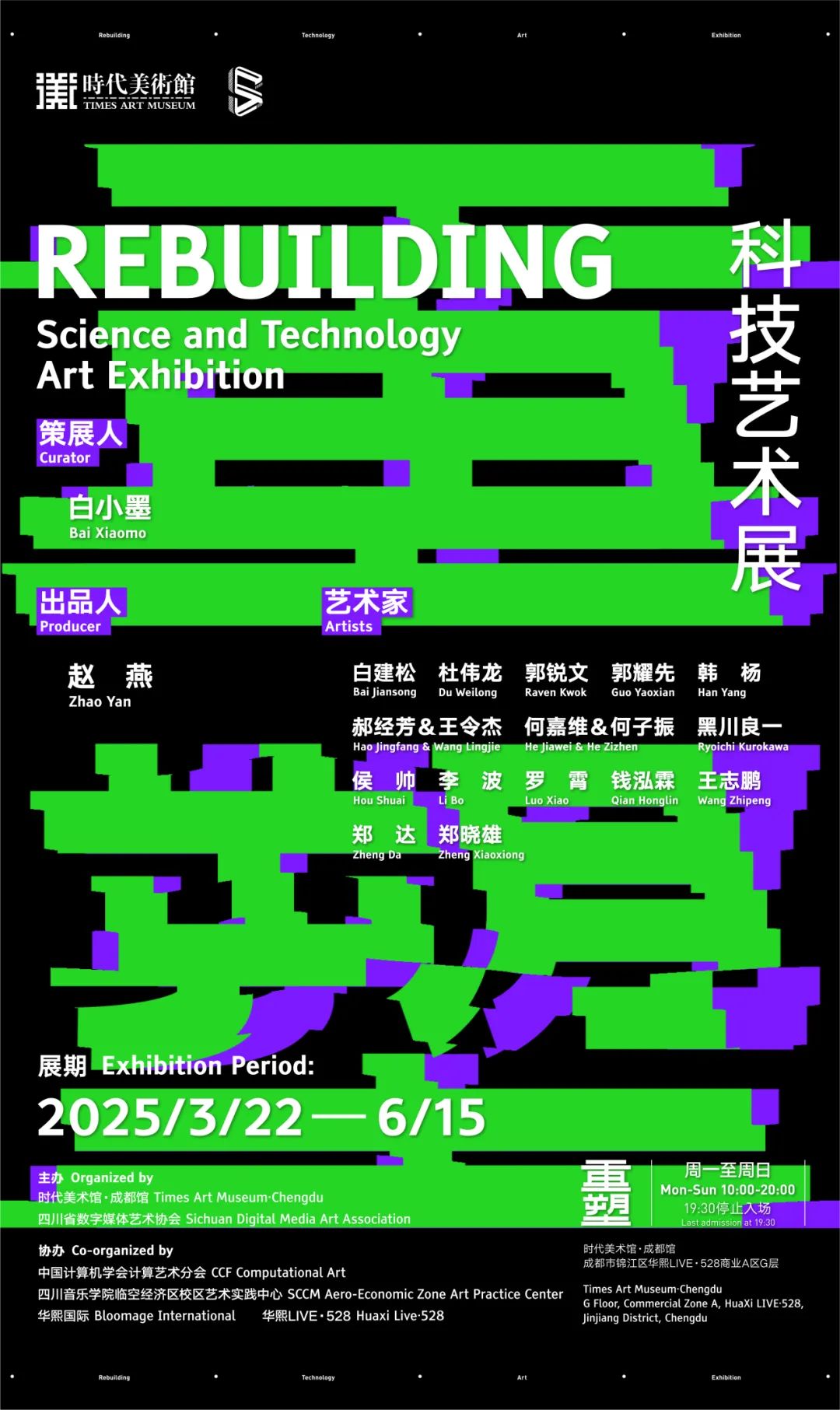 “重塑:科技艺术展”由时代美术馆·成都馆、四川省数字媒体艺术协会主办,中国计算机学会计算艺术分会、四川音乐学院临空经济区校区艺术实践中心、华熙国际、华熙LIVE·528共同协办。