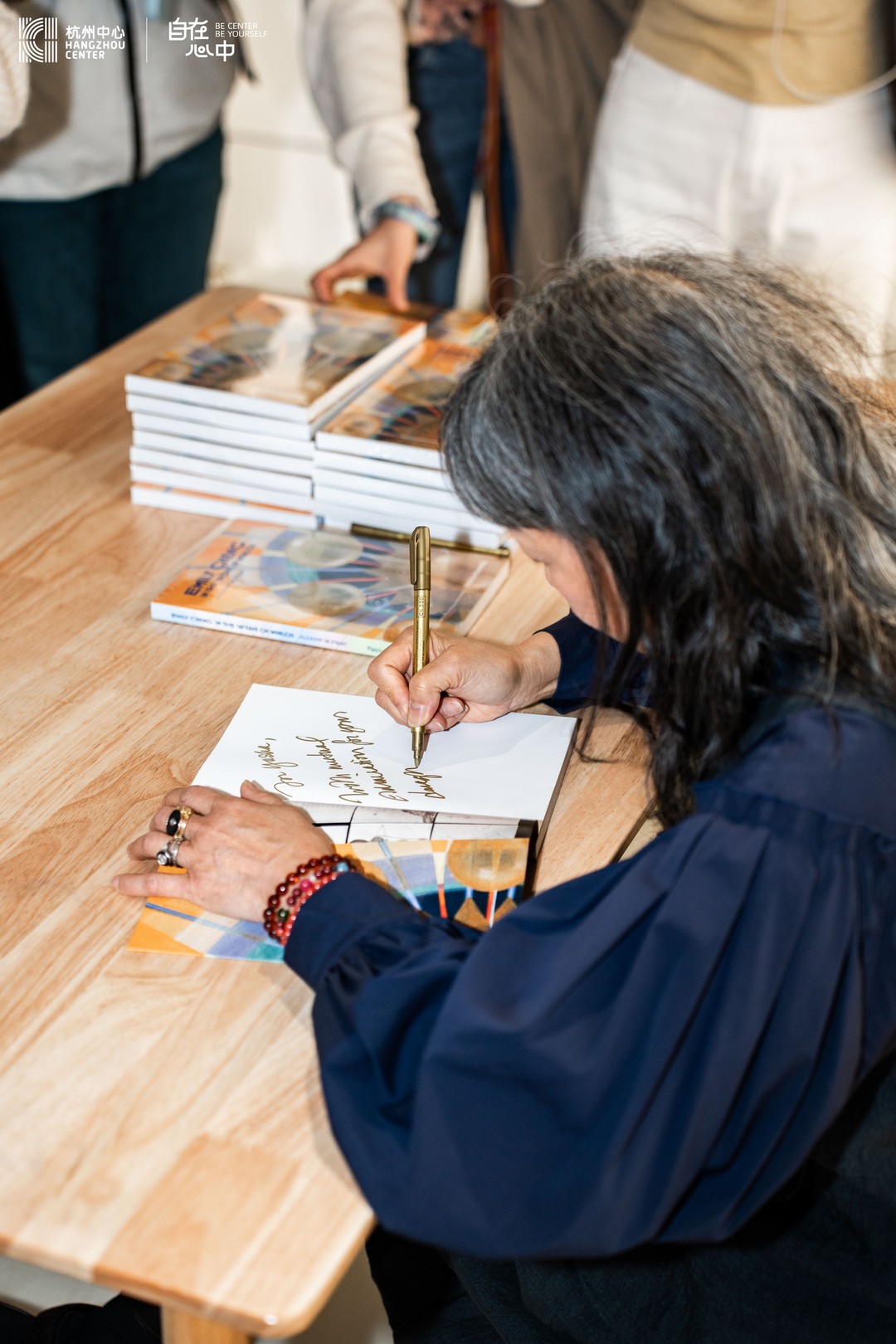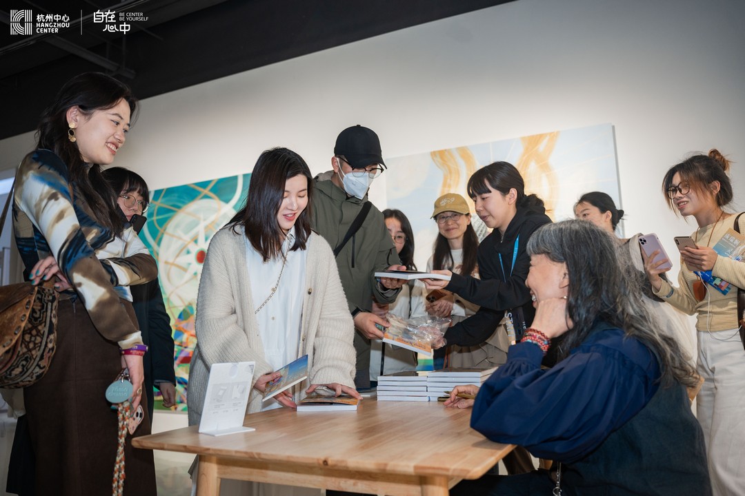 在展览开幕式后,成瑞娴携其最新著作《在世界的编织中——绘画中的炼金术》进行签售活动。该书深入探讨了她多年来在艺术创作中对宇宙、精神性以及东西方文化融合的思考,结合了大量展览中的作品图片和创作背后的故事。