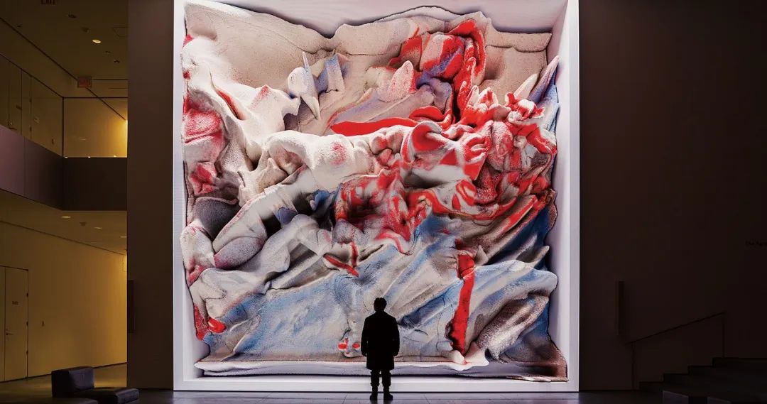雷菲克·阿纳多尔 《机器幻觉:LNM-珊瑚》AI数据雕塑 时长4分 2024年(作品说明:艺术家将2亿张照片经过算法处理后,转化成机器生成的图像,而后经算法上色生成动态雕塑。)