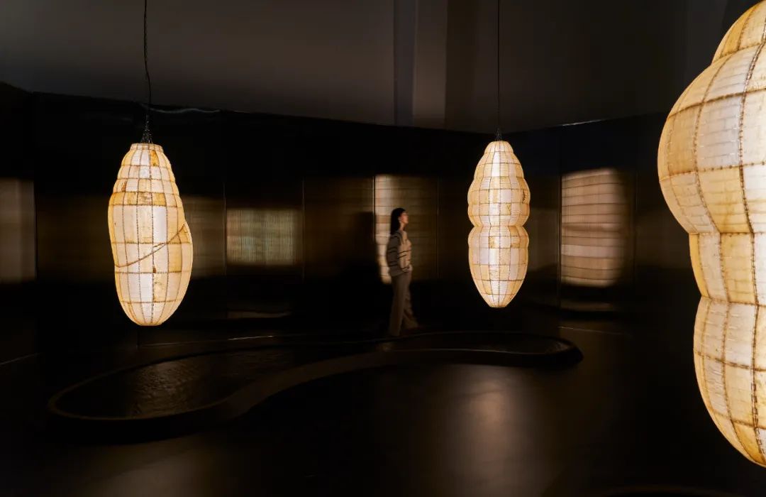 “海藻荚体”系列(2019-2023)、“放射虫”系列(2023-2024)和《另一个你》(2024)进一步延展安妮卡·易对有机和非有机生命形式的持续探索,通过审视生物与人工合成物之间的复杂边界,展现科技与自然相互渗透所孕育新生的可能方式。在“海藻荚体”系列中,她使用巨藻——一种构建海底森林的海藻——塑造出类似虫茧和内脏器官的有机形态雕塑。在柔和的黄色光亮的映照下,荚体中的机械仿生飞蛾轻轻振翅并投下影子,唤起艺术家所提出的有机与人工融合的“生物化机器”概念。受古代浮游生物启发的“放射虫”系列机械雕塑则进一步扩展了这一概念,它们在空间中起伏波动,以机械的形式捕捉生命的律动。本次展览汇集迄今为止最大规模的“放射虫”系列作品,并首次展出该系列的3件最新创作。《另一个你》继续探索人类与非人类的关系,作品由艺术家与北京师范大学生命科学学院的生物学家合作完成,以融合水母、珊瑚等海洋生物DNA、经由基因工程改造而成的彩色细菌为媒介,通过重组重新定义物种之间的既有界限。这些作品共同质疑生命、亲缘关系和身份的传统定义,为我们勾勒出一个生物学、技术与人类通过重塑对存在的定义而紧密相连的未来图景。